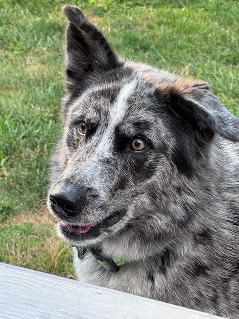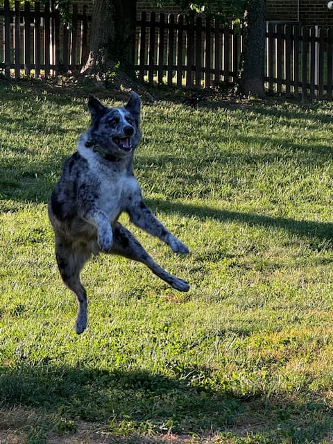 Today, I’m sharing my handsome lad, Olaf, a lovably-clumsy husky-mix oaf who’s sleeping at my feet as I write this. Last year, my son received a small drone/quadcopter as a birthday gift, and he’s been putting on nightly “drone shows” for the family in the backyard.