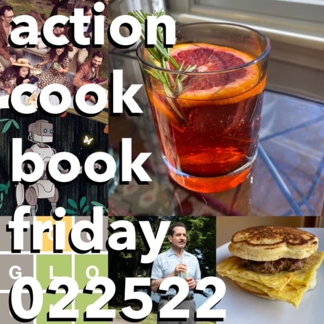 I don’t often send out these Friday newsletters to the full email list; that’s really where being a paying subscriber to The Action Cookbook Newsletter pays off. You get three newsletters a week, every week, including this stalwart lifestyle guide. You’re also eligible for various promotions, including sticker giveaways, gift card drawings, and the occasional Action CookBox prize package!