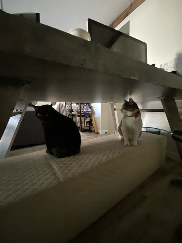 1) a classic tale as old as time: an older cat (Diva, the black one) immensely hates it when a younger cat (Zorro) gets brought in to the house. She constantly wants to end him. He’s now bigger than her and doesn’t take her mess anymore. It’s glorious.