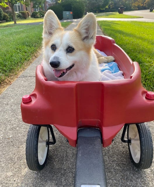 We planned it for the day after the long holiday weekend, a chance to maximize our time with the old girl before saying goodbye. She got extra hugs and kisses—more than she wanted, probably, and I slipped in a few expletive-laced “okay, that’s enough” comments in her voice for old time’s sake. She loudly heckled a game of backyard wiffle-ball and downed several hot dogs and a bacon cheeseburger at a weekend cookout. She rode around the neighborhood in the kids’ old wagon, and she carried herself not like an old dog whose body had failed her but like a queen surveying her kingdom from a gilded chariot.