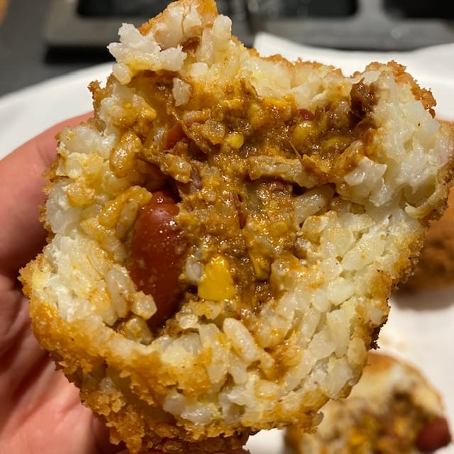 Now, the astute reader will realize that—despite the obvious stunt aspect to what I’m doing here—this is really just a modified version of arancini, one of my favorite foods and something I’ve played with before, like in December 2019 when I put halal cart-style chicken and rice into my delicious Halal Balls.