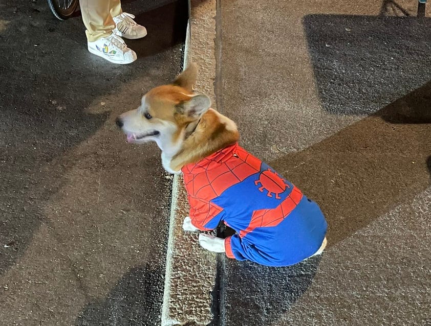 I think we have to assume that this corgi was not dressed up for Halloween either, then, and is actually a costumed crimefighter. Now, corgis might not be the most athletic dogs, but then, crime is lower in Denmark anyways. So it probably works fine. Great dog.
