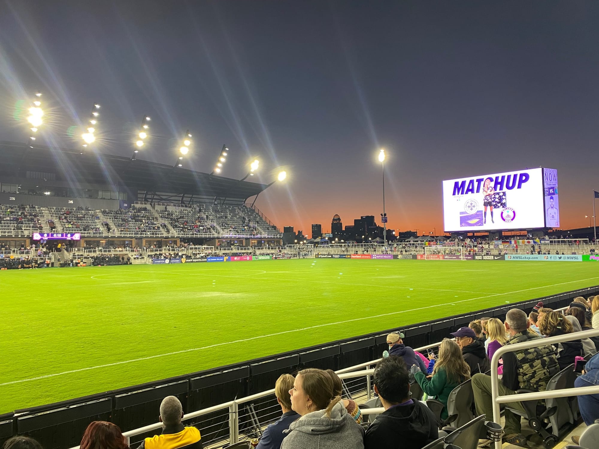 Later that same evening, we made a family outing to Lynn Family Stadium, our first trip to the gleaming new soccer-specific stadium in Louisville’s Butchertown neighborhood. The kids had monitored the progress of its construction with fascination for years—it’s visible right off I-71 as you approach downtown—but the pandemic had forced me into some half-hearted and half-true demurrals and deflections whenever they’d ask if the stadium was finally completed. Eighteen months after I’d first told them we’d go “as soon as it’s done”, we finally trekked down to watch Racing Louisville FC play the Orlando Pride of the NWSL.