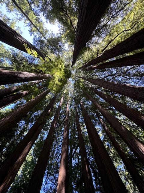 What kind of bird is that? How old are these trees? Where’s the biggest redwood?1
