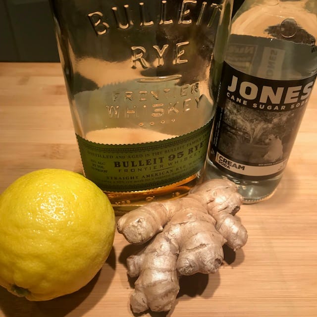 It’s a simple shopping list: rye whiskey, lemon, fresh ginger, and cream soda.