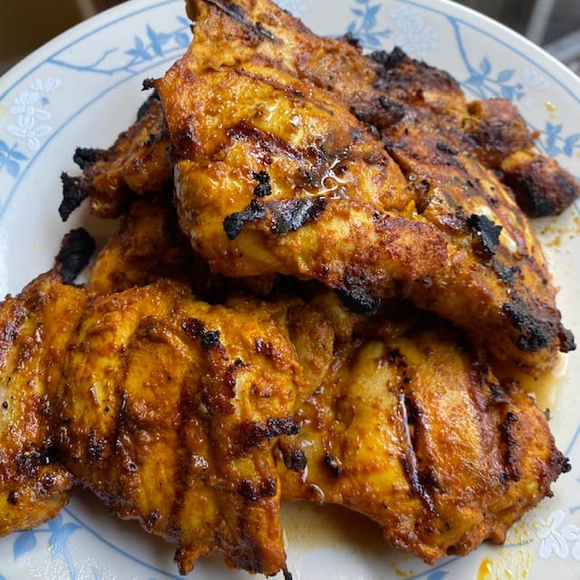 I love grilling chicken thighs, because the difference between grilling them and preparing them pretty much any other way is so big. They’re always good.