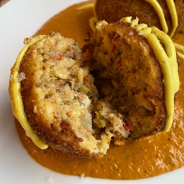 If you’re not familiar, boudin blanc is a Cajun sausage usually made from a mixture of pork, rice, organ meats, bell pepper, herbs and spices that’s stuffed in a casing and then poached, grilled or smoked. Boudin balls is that same sausage removed from its casing, formed into a ball, then breaded and fried.