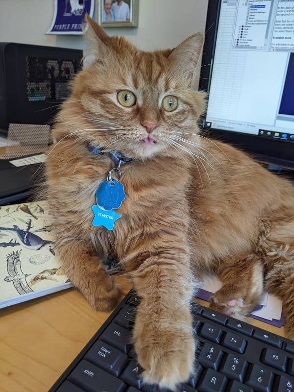 She's been featured a few times before, but of course deserves to be admired as much and often as possible: my stray from the mean streets of Columbus, my fluffiest coworker, descended from tigers[citation needed], definitely not missing a few brain cells - Toaster!