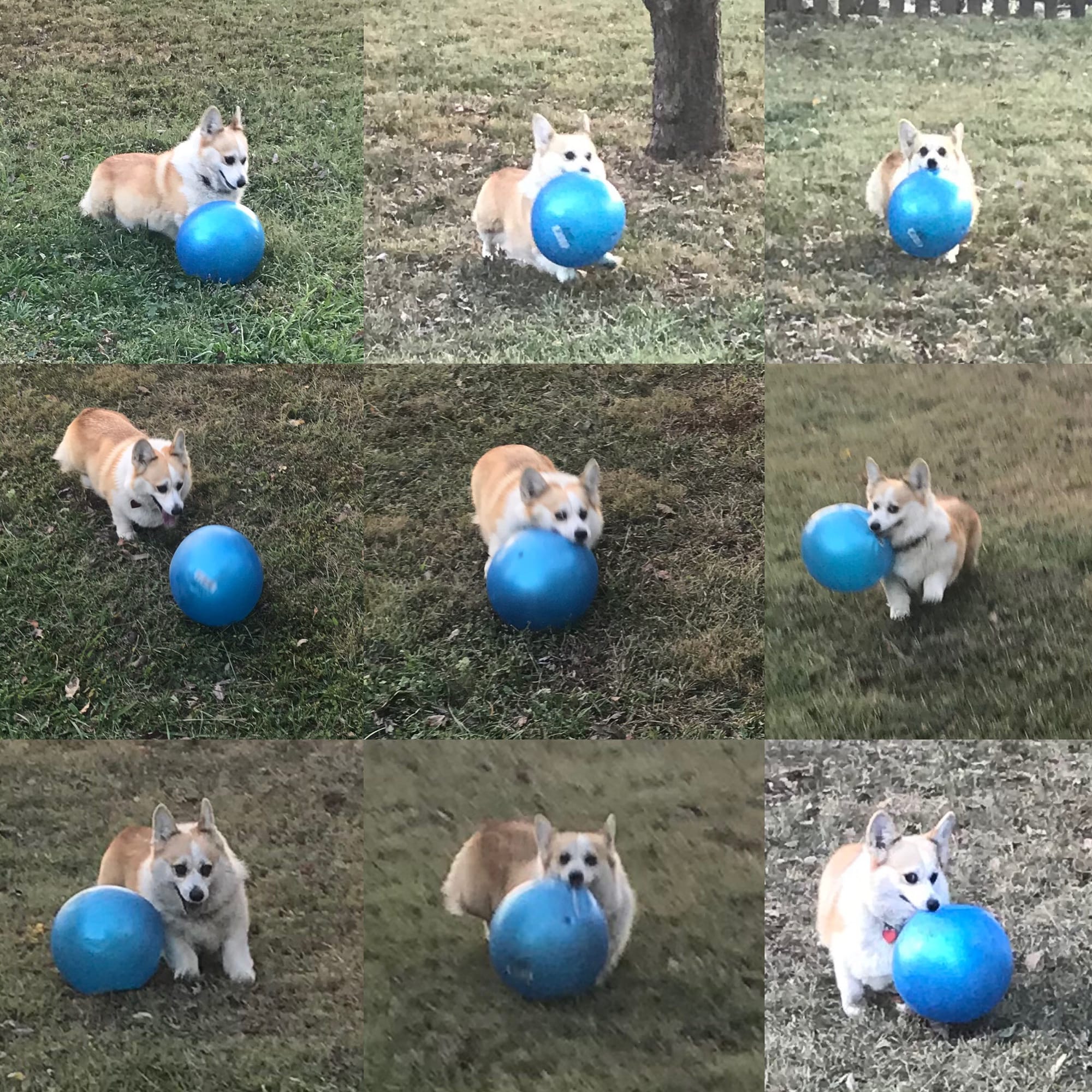 1) Okay, here’s nine shots of Holly carrying her slowly-deflating oversized ball.