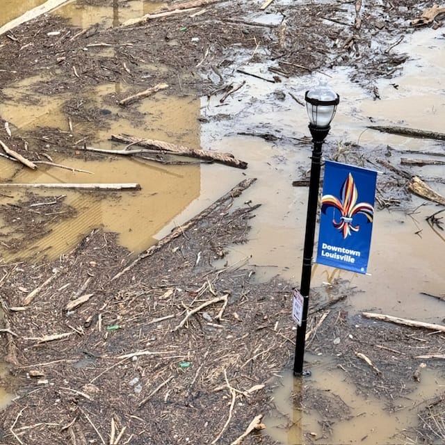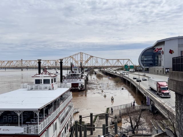 Anyway, I’ve been thinking about rain delays this past week, because it rained a lot here recently. I mean, a lot. The Louisville area received a good months’ worth of rain in the course of four days last week, sending the Ohio River well over its banks and into the downtown waterfront1.