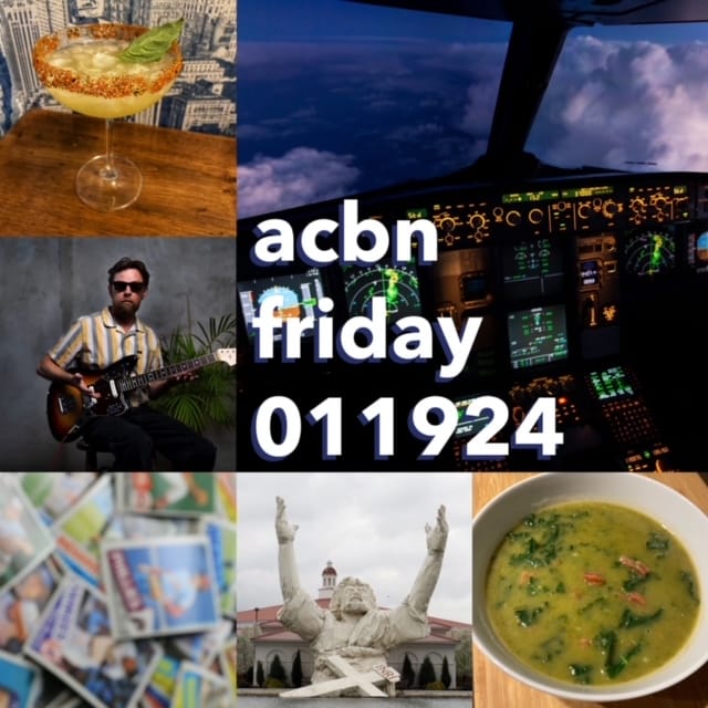The Friday Newsletter could definitely land a commercial airplane. ALSO: soup, overly-complex cocktails, cinematically-soulful music, and one damned good book.