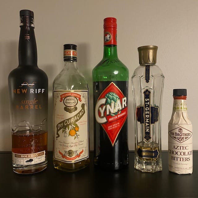 Now, if you’re not a nutcase about having a fully-stocked bar like I am, then you might blanch at a five-bottle cocktail. I’ll tell you, though—each of these ingredients is a heavy-hitter. Ferrand Dry Curaçao is, for my money, the best orange liqueur on the market, and I love using it in cocktails. Ditto St-Germain, which has a ton of uses and always brightens a drink up. The chocolate bitters play well in a Sea Serpent, among others drinks. The Cynar might be the thing you’re least likely to have on your bar, but it’s a pleasant bitter apertif to have around—useful in spritzes or anywhere else you’d use an Amaro.