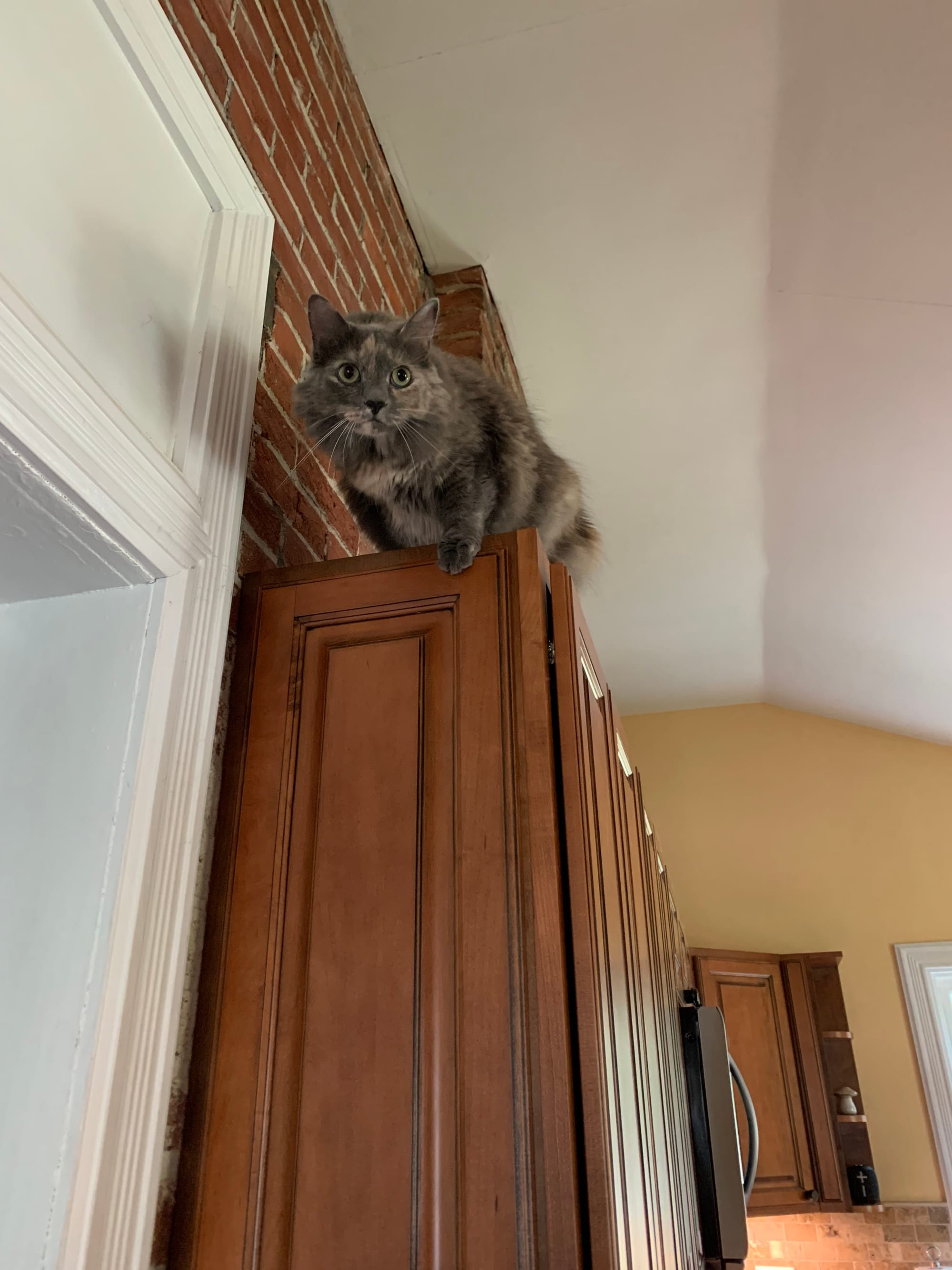 This seemed like a perfect excuse to send more pics of our cat Ashe so you’ve got some more ammunition for the pet queue! We still don’t know how she gets up there and she certainly doesn’t know how to get down. This normally ends with her crying until we grab a step stool to climb up and help her out.