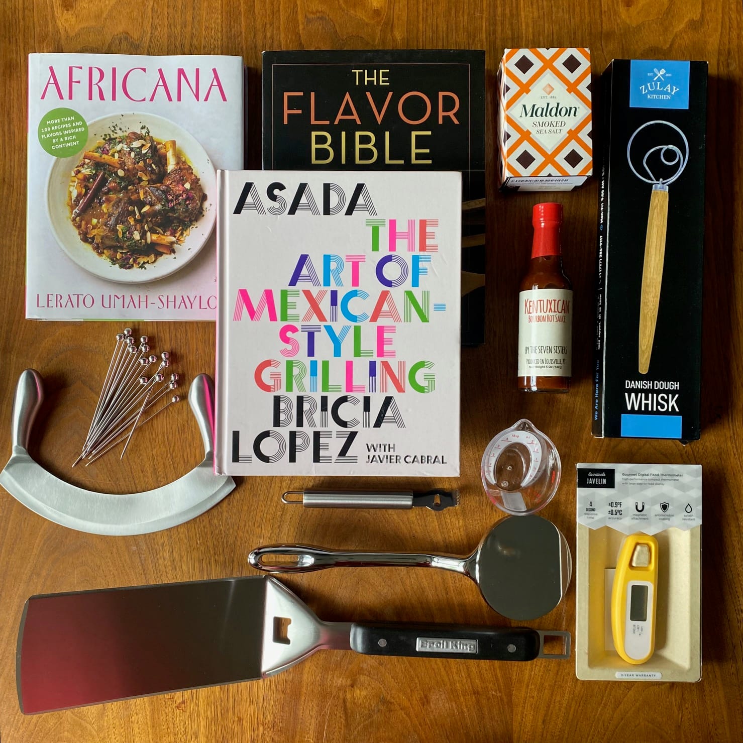 A Broil King “Super Flipper” — My favorite grill tool, this extra-long, extra-heavy is great for making Smashburgers, and it’s just a lot of fun to hold.