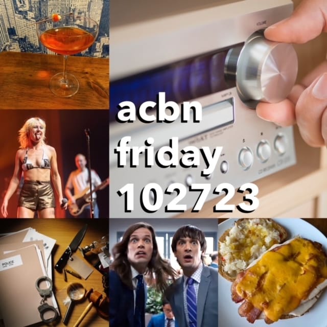 I make a sandwich that turns every knob to 11, a terrible mistake in cocktail-craft, and share some great music, cozy murders, geographic gripes and more!