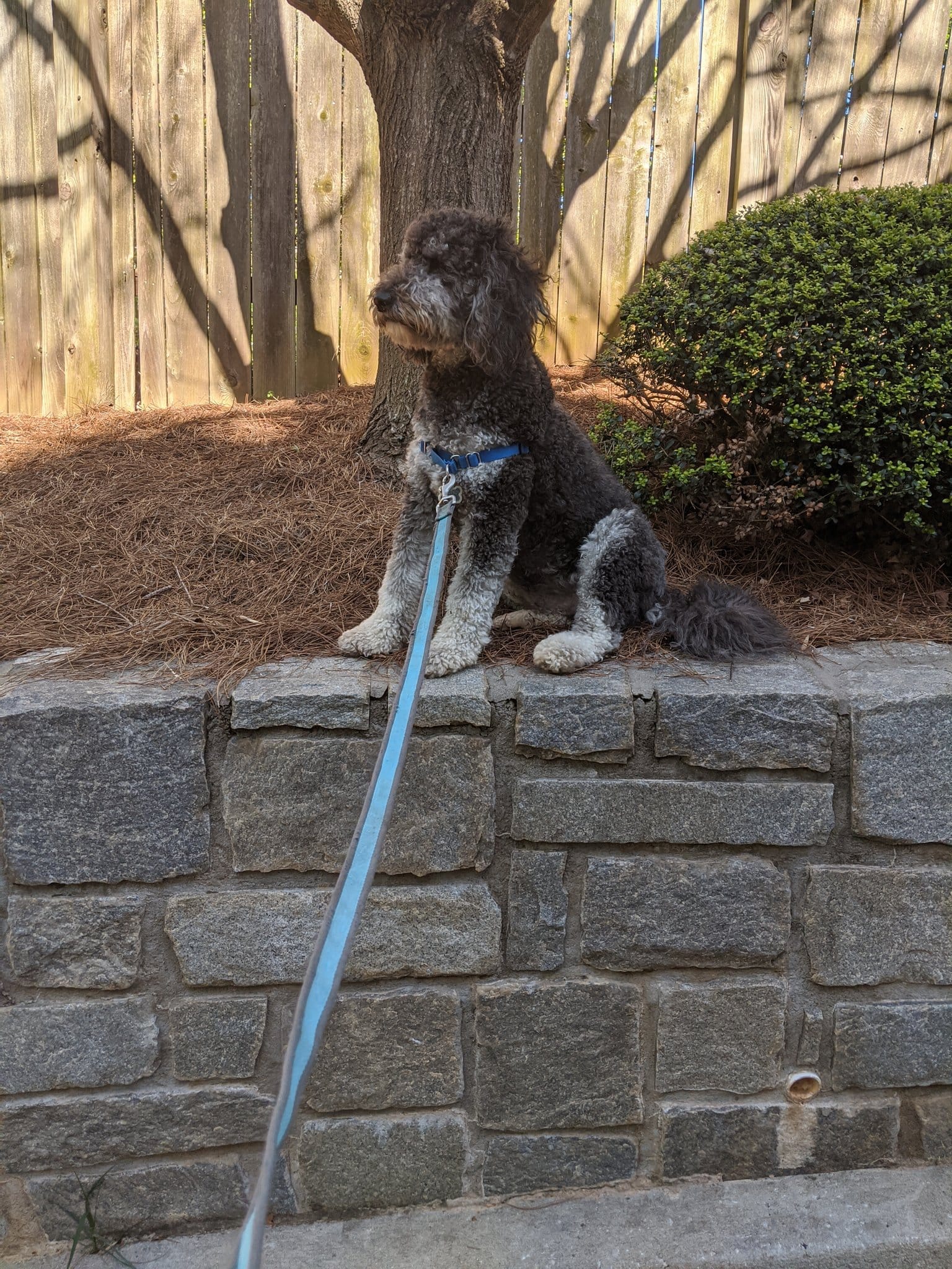 GOOD DOG. So regal. He looks like he built that wall himself, or hired someone to do it.