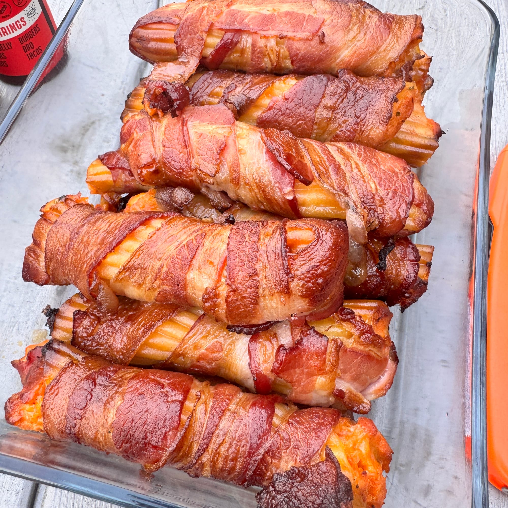 I gave a go at Shotgun Shells, a not-at-all-invented-by-me concept that involves stuffing manicotti shells with meat and cheese, wrapping them in bacon, and smoking them. My first attempt was pretty good, though the smoker got a little too hot (I blame Colonel E.H. Taylor for my lapse in attention), and they burned a little, with the bacon shrinking more than I'd have liked.