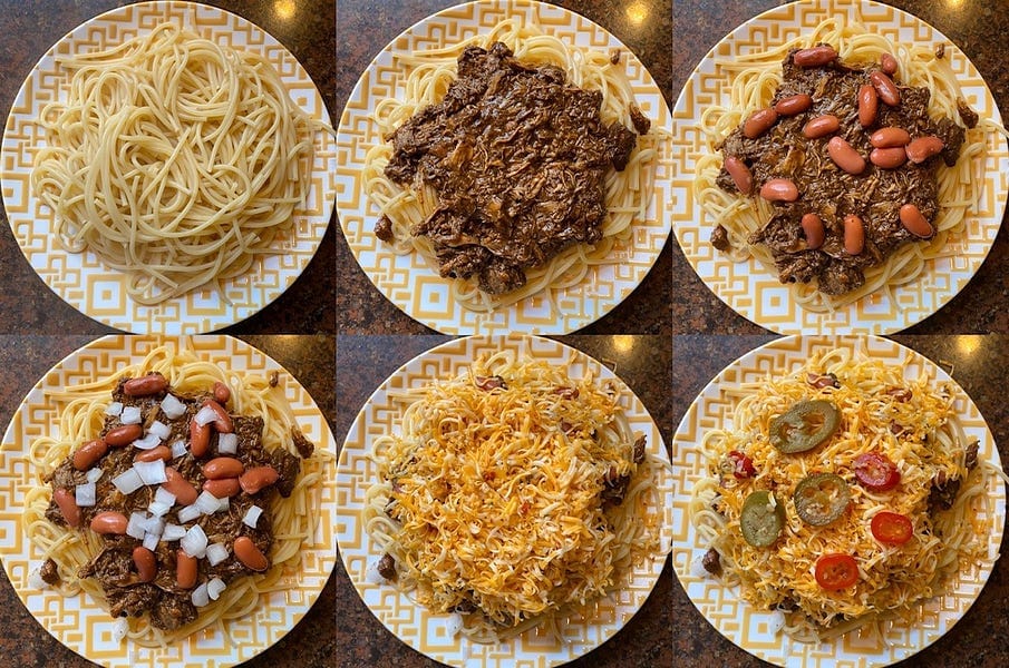 The cheese would be the biggest question mark, as no plate of Cincinnati chili is complete without a heaping mound of finely-shredded sharp cheddar cheese.