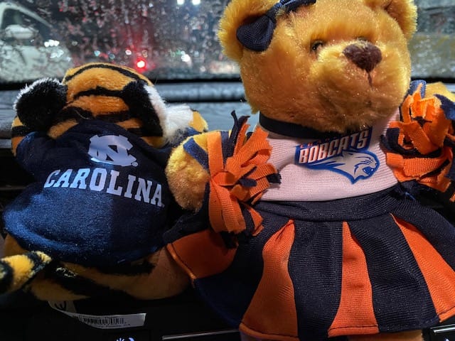- stuffed tiger wearing a University of North Carolina basketball jersey, an inexplicable combination of team and animal given that one of their ACC rivals is, in fact, the Tigers