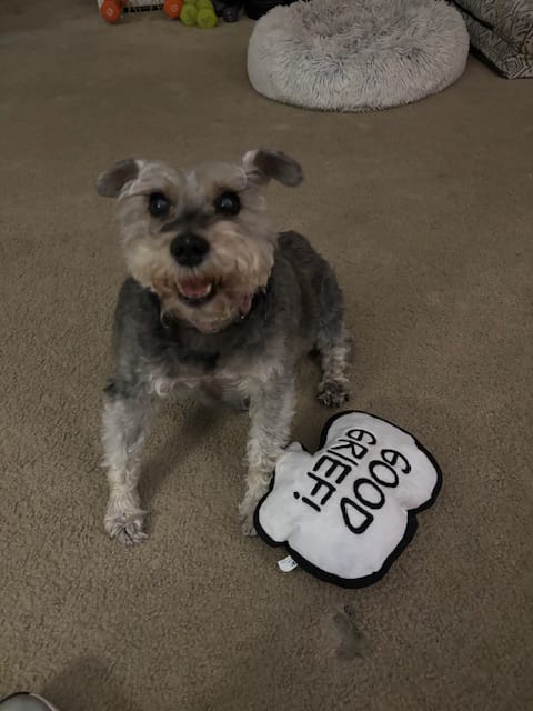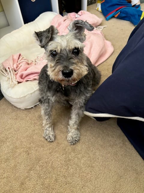 My best girl, Gabby, passed on Monday. She almost made it to 14 years. You have featured her on here before. We had her for 12 1/2 wonderful years; she came from Schnauzer Love Rescue, which is a multi-state organization. Gabby was the most loyal companion, the fiercest protector, the biggest love bug, and the goofiest girl. She never did anything halfway, even when she got sick. We are going to miss her so much.