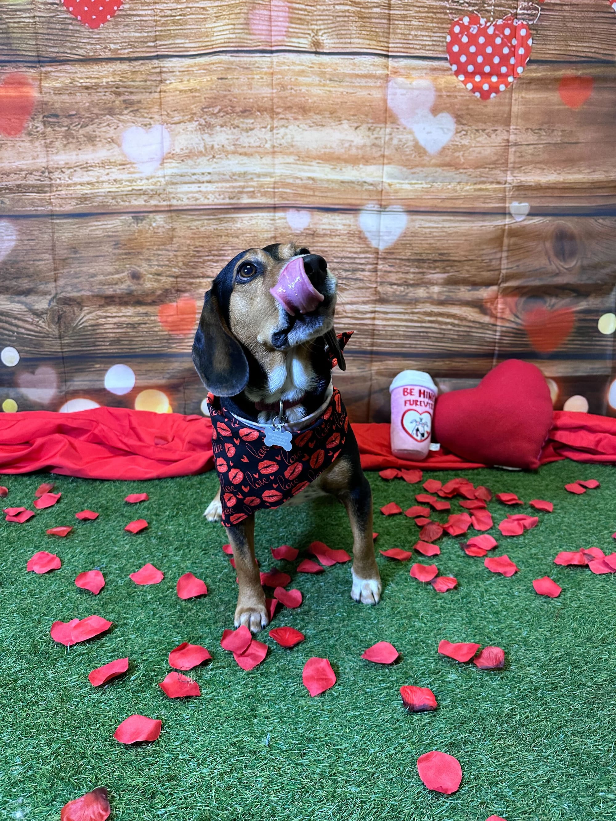 Got a Gimbal for you for next week. His daycare does periodic photo shoots for holidays and they'll text you the photos if you don't want to pay for a print, and they have a box of props (and a pet store next door which is a great setup). I'm sure 4 seconds after this was taken he launched himself several feet into the air to try and get the treat one of the counselors was holding.