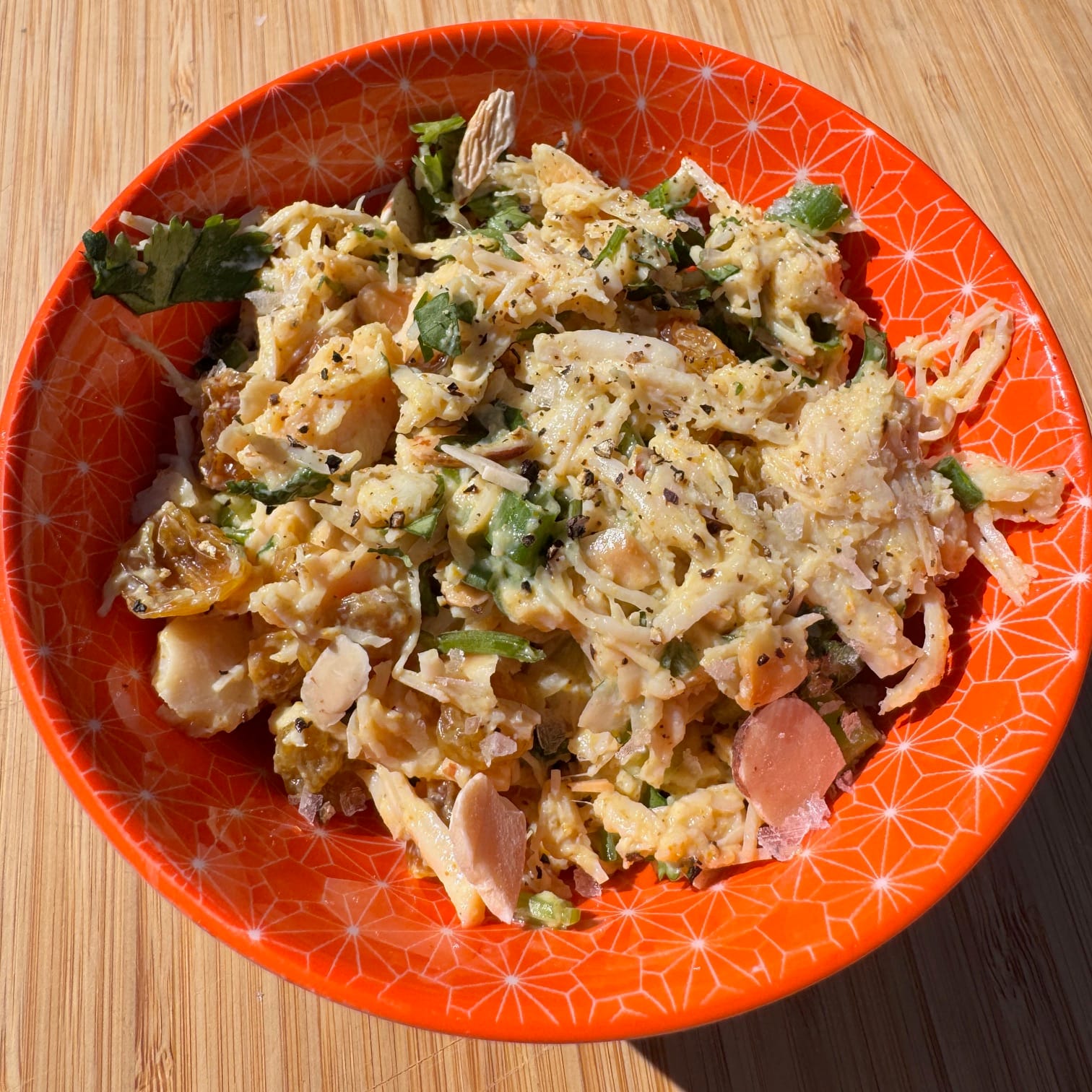 This week, I'm staying with the British vibes established in the intro and making a take on Coronation Chicken Salad, the lightly-curried dish first invented for the 1952 crowning of Queen Elizabeth II. The classic version incorporates dried apricots, but I'm mixing it up a little bit.