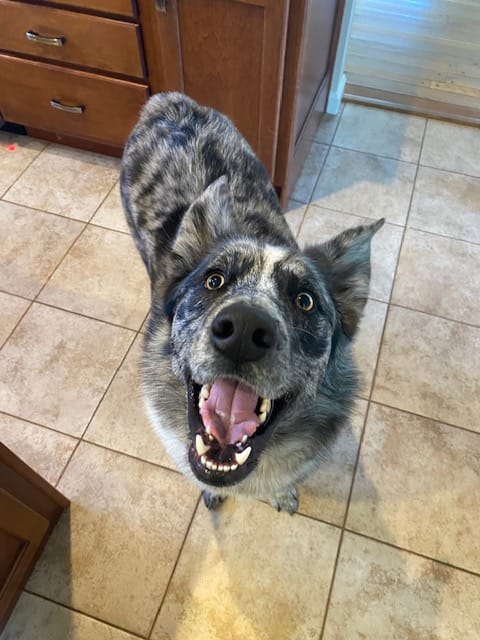 FINALLY: as a holiday bonus, here’s a picture of Olaf, who celebrates one year as a part of our family on Wednesday. He was found on the street by Louisville Metro Animal Services last October, had one failed adoption, and finally came to us just before Thanksgiving. It was a big adjustment for both him and for us, but I can’t imagine our family without him now.