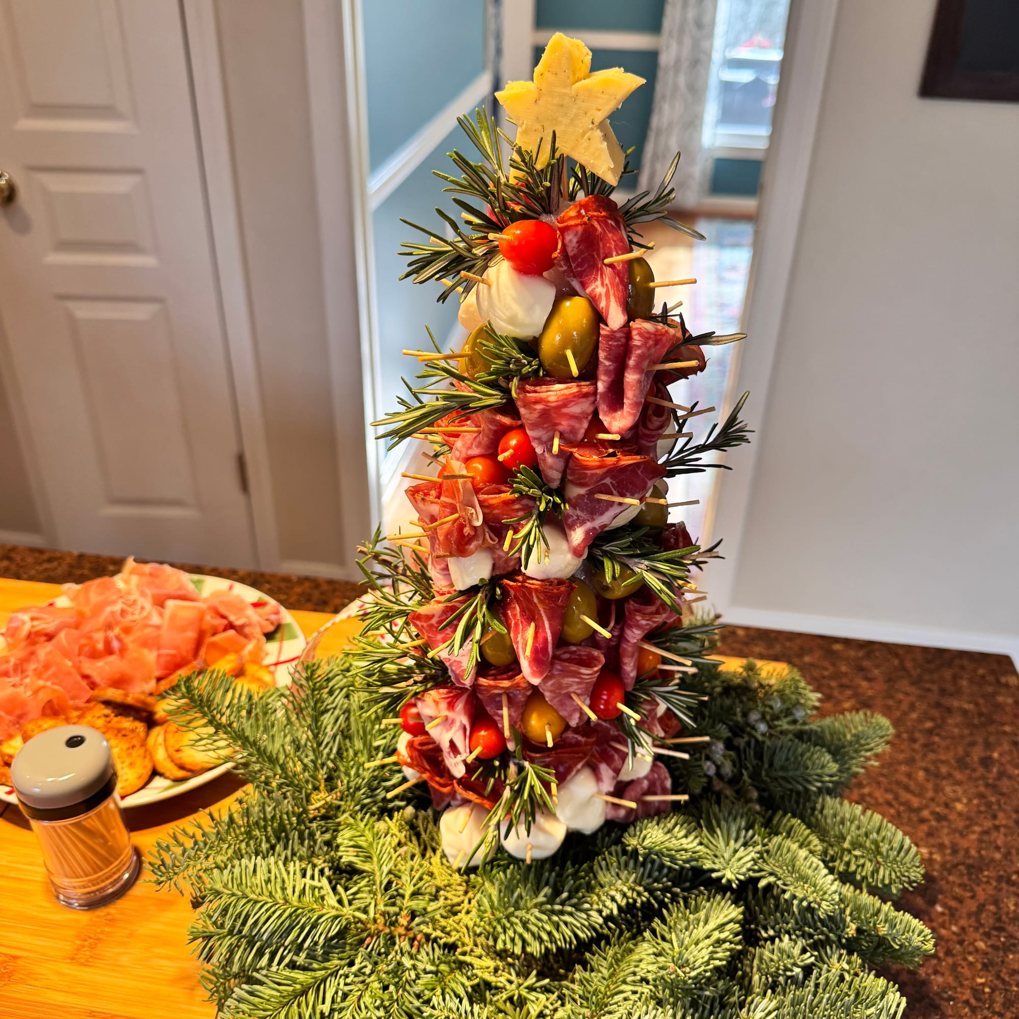 Oh, and a Christmas tree made of meat and cheese. Let's talk about that first.